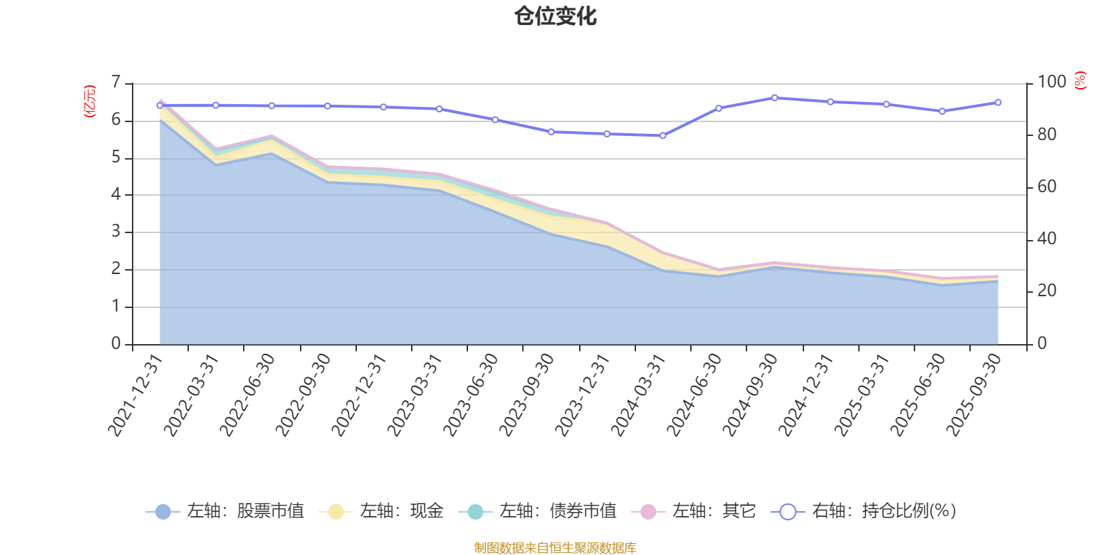 据定期报告数据统计,近三年平均股票仓位为88.4%,同类平均为85.66%。2024年三季度末基金达到94.45%的最高仓位,2024年一季度末最低,为79.98%。