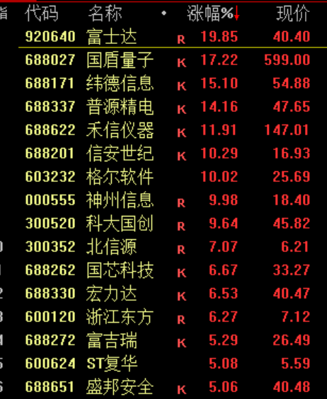 量子科技概念股继续活跃,格尔软件、神州信息涨停。