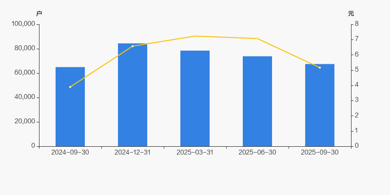 截至2025年9月30日,公司最新总股本为6.79亿股,且均为流通股。户均持有流通股数量由上期的9202股上升至1.01万股,户均流通市值5.2万元。
