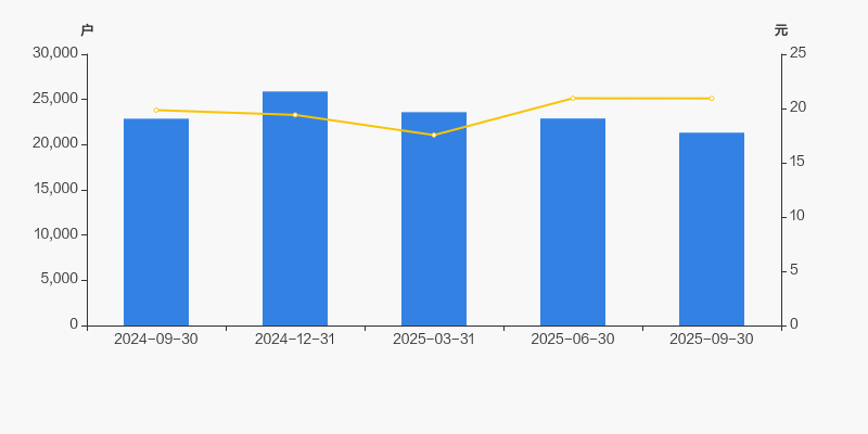 截至2025年9月30日,公司最新总股本为2.23亿股,其中流通股本为1.28亿股。户均持有流通股数量由上期的5596股上升至6008股,户均流通市值12.57万元。
