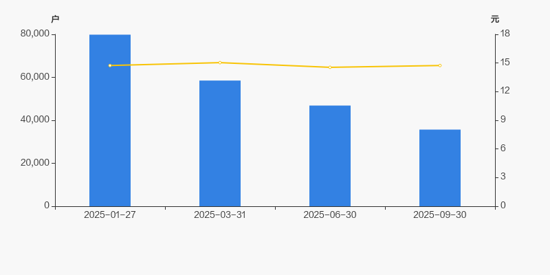 自2025年1月27日以来,公司股东户数连续3期下降,截至目前减幅为55.32%。2025年1月27日至2025年9月30日区间股价下降0.00%。