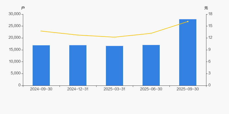 2024年9月30日至今,公司股东户数显著大幅增长,区间涨幅达64.84%。2024年9月30日至2025年9月30日区间股价上涨17.56%。