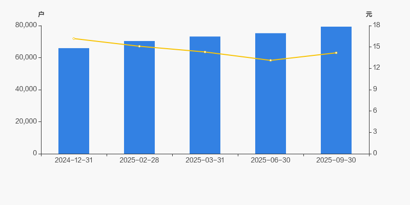 自2024年12月31日以来,公司股东户数连续4期上涨,截至目前增幅为20.34%。2024年12月31日至2025年9月30日区间股价下降12.39%。