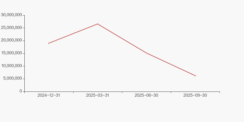 截至2025年9月30日,公司最新总股本为8.89亿股,其中流通股本为5.21亿股。户均持有流通股数量由上期的6923股下降至6566股,户均流通市值9.31万元。