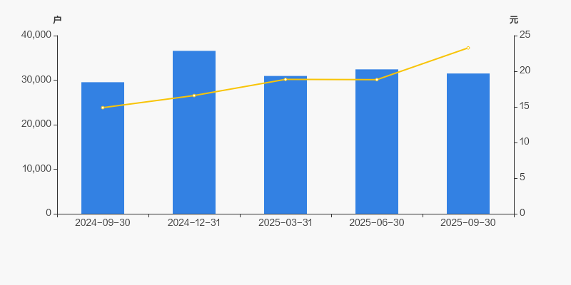 2024年9月30日至今,公司股东户数有所增长,区间涨幅为6.63%。2024年9月30日至2025年9月30日区间股价上涨56.34%。