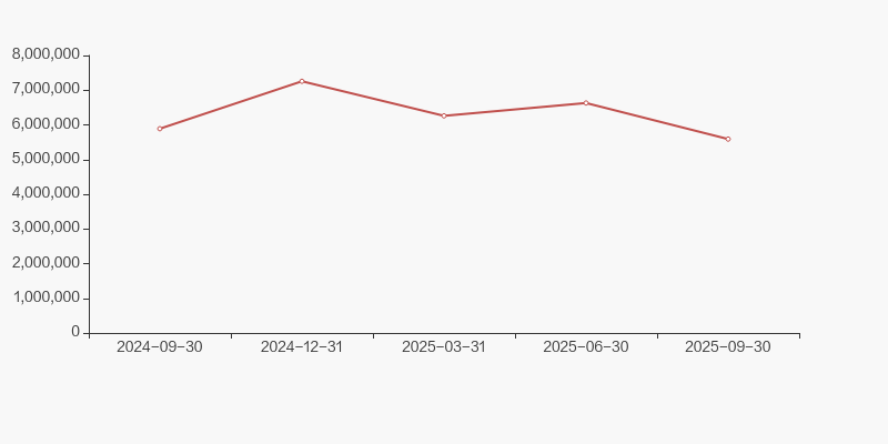 截至2025年9月30日,公司最新总股本为11.66亿股,其中流通股本为11.62亿股。户均持有流通股数量由上期的3.05万股下降至2.96万股,户均流通市值21.23万元。