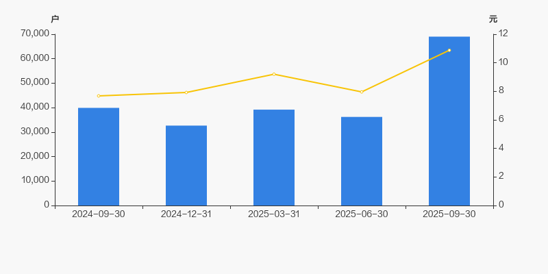 2024年9月30日至今,公司股东户数显著大幅增长,区间涨幅达72.98%。2024年9月30日至2025年9月30日区间股价上涨41.67%。