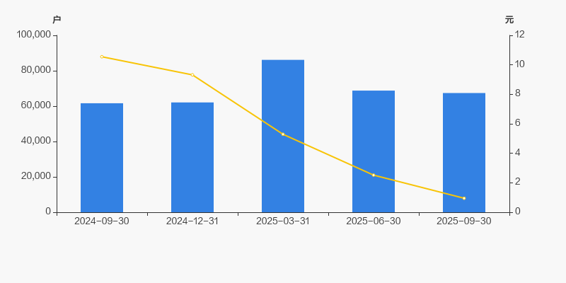 2024年9月30日至今,公司股东户数有所增长,区间涨幅为9.37%。2024年9月30日至2025年9月30日区间股价下降91.00%。