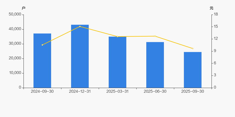 自2024年12月31日以来,公司股东户数连续3期下降,截至目前减幅为43.28%。2024年12月31日至2025年9月30日区间股价下降35.98%。