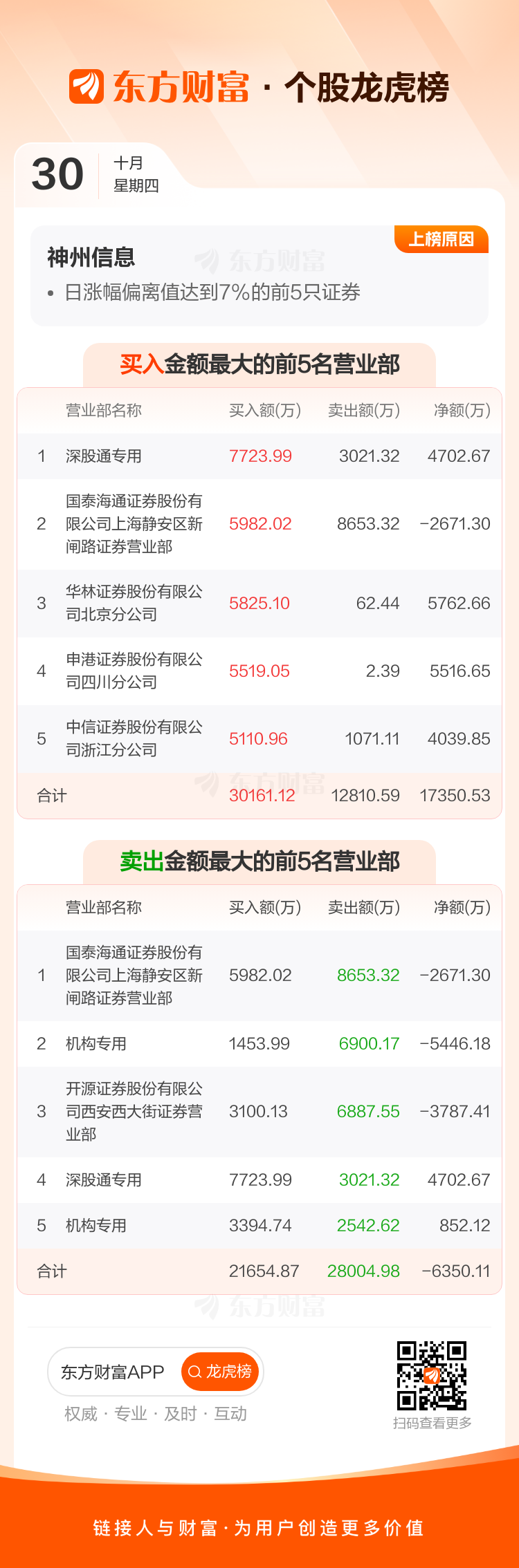 神州信息(000555)龙虎榜数据(10-30)