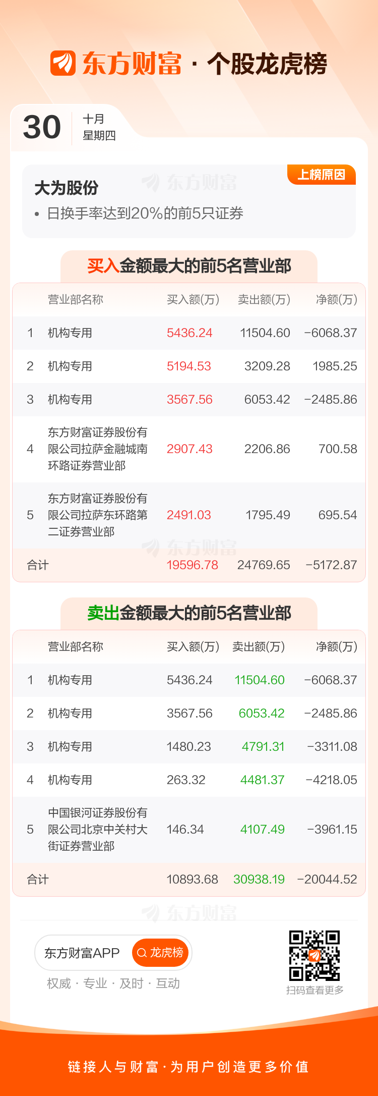 大为股份(002213)龙虎榜数据(10-30)