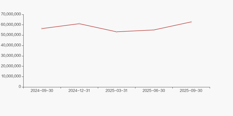 铁龙物流2025年10月31日在三季度报告中披露,截至2025年9月30日公司股东户数为6.17万户,较上期(2025年6月30日)减少4338户,减幅为6.57%。