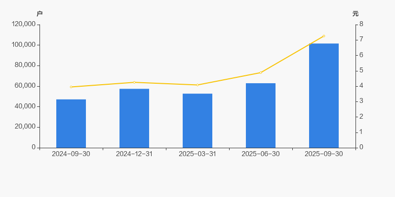 2024年9月30日至今,公司股东户数成倍增长,区间涨幅达115.48%。2024年9月30日至2025年9月30日区间股价上涨83.80%。