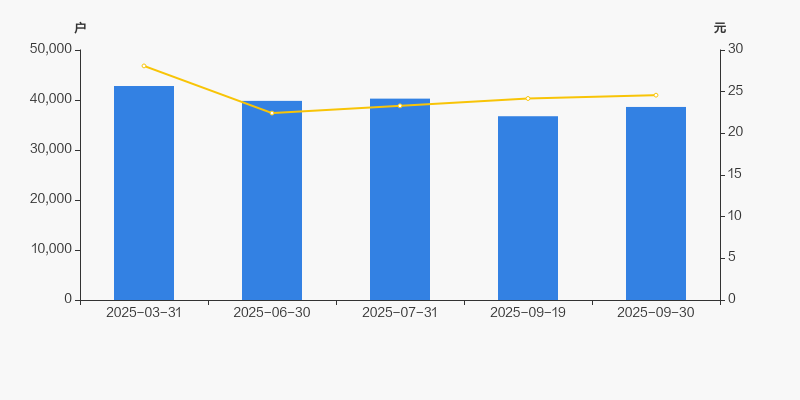 2025年3月31日至今,公司股东户数有所下降,区间跌幅为9.79%。2025年3月31日至2025年9月30日区间股价下降12.51%。