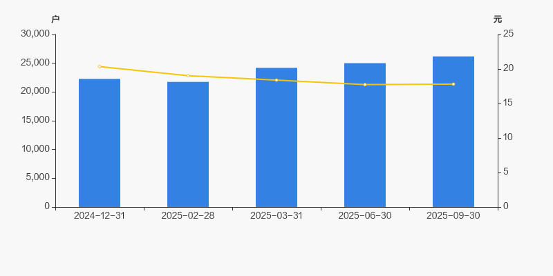 自2025年2月28日以来,公司股东户数连续3期上涨,截至目前增幅为20.40%。2025年2月28日至2025年9月30日区间股价下降6.42%。