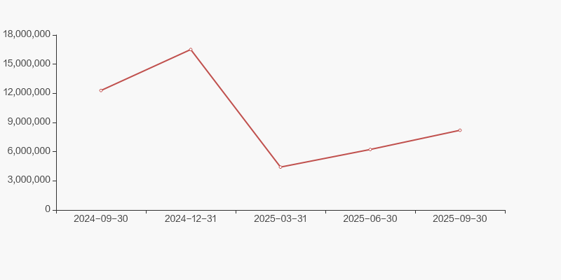 截至2025年9月30日,公司最新总股本为7.01亿股,其中流通股本为6.76亿股。户均持有流通股数量由上期的4887股上升至5592股,户均流通市值11.44万元。