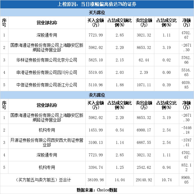 今日龙虎榜单上出现了深股通的身影,占据了买一、卖四的位置,净买入4702.67万元,占当日成交总额的1.73%。