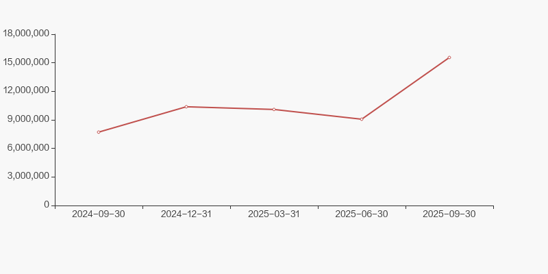 截至2025年9月30日,公司最新总股本为8.62亿股,其中流通股本为8.46亿股。户均持有流通股数量由上期的3.08万股上升至3.17万股,户均流通市值25.32万元。