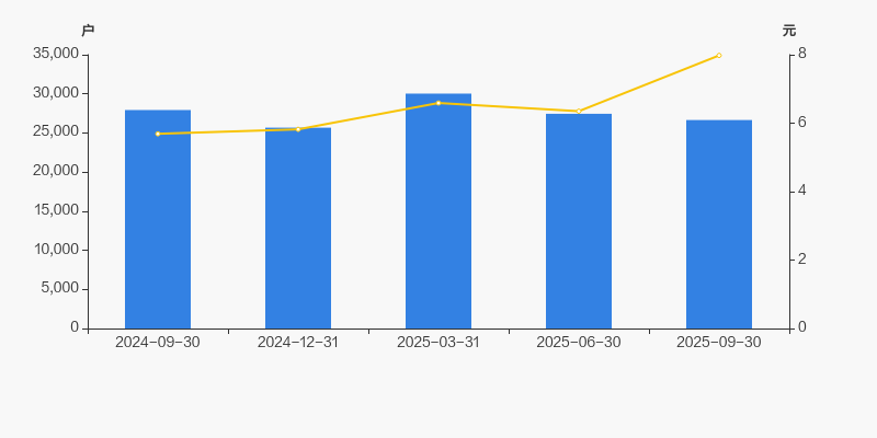 2024年9月30日至今,公司股东户数有所下降,区间跌幅为4.58%。2024年9月30日至2025年9月30日区间股价上涨40.17%。