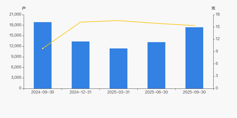 截至2025年9月30日,公司最新总股本为2.19亿股,其中流通股本为2.01亿股。户均持有流通股数量由上期的1.52万股下降至1.15万股,户均流通市值17.67万元。