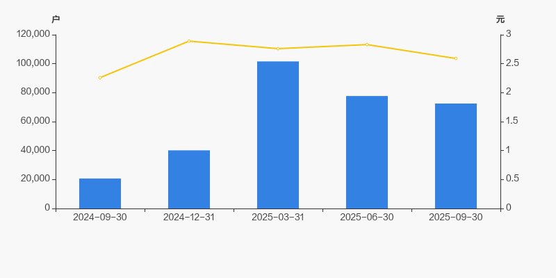 2024年9月30日至今,公司股东户数成倍增长,区间涨幅达250.00%。2024年9月30日至2025年9月30日区间股价上涨14.60%。