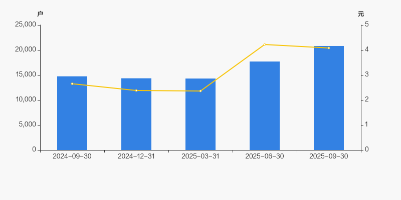 2024年9月30日至今,公司股东户数显著增长,区间涨幅为41.14%。2024年9月30日至2025年9月30日区间股价上涨53.96%。