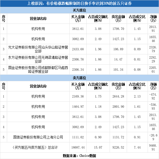 多主力现身龙虎榜,海科新源上涨11.15%(10-30)
