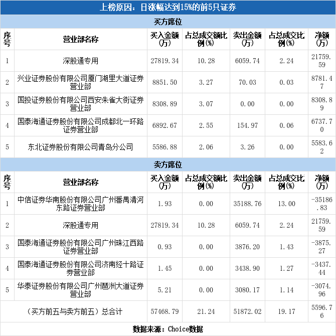 深股通现身龙虎榜,鹏辉能源涨停(10-30)