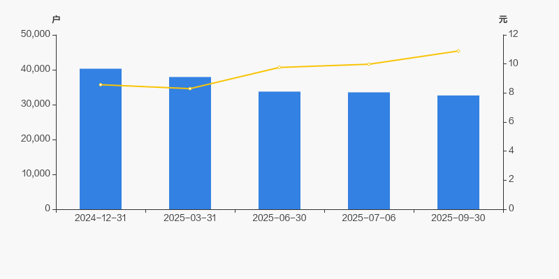 自2024年12月31日以来,公司股东户数连续4期下降,截至目前减幅为19.03%。2024年12月31日至2025年9月30日区间股价上涨27.05%。