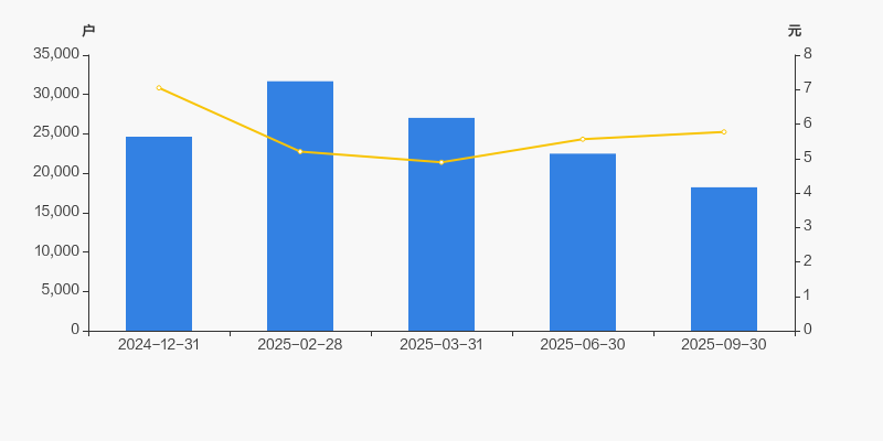自2025年2月28日以来,公司股东户数连续3期下降,截至目前减幅为42.50%。2025年2月28日至2025年9月30日区间股价上涨10.89%。
