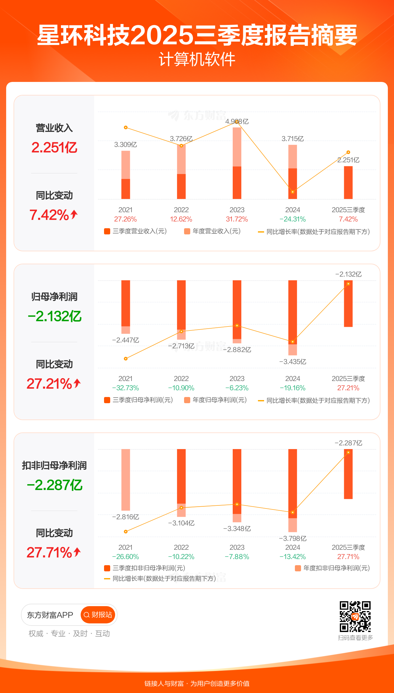 星环科技10月31日发布2025年三季报显示,公司前三季实现营业收入2.25亿元,同比增长7.42%;归母净利润-2.13亿元;扣非归母净利润-2.29亿元。
