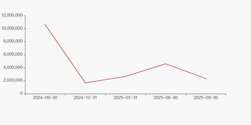 截至2025年9月30日,公司最新总股本为2.35亿股,且均为流通股。户均持有流通股数量由上期的1.22万股上升至1.32万股,户均流通市值34.54万元。