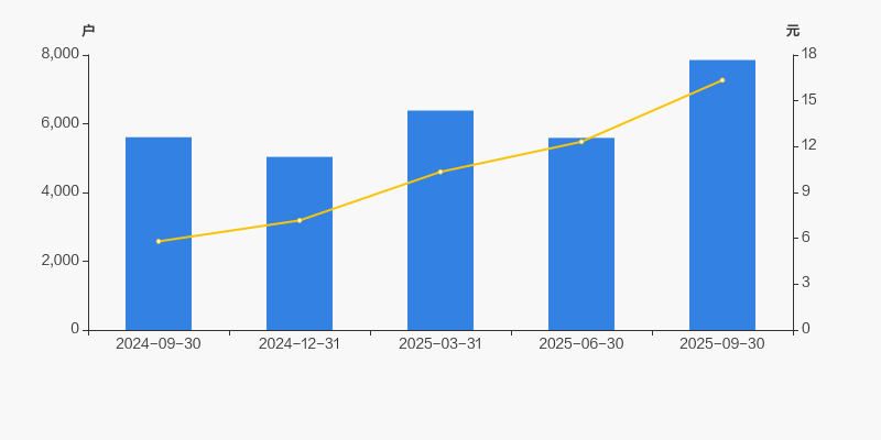 截至2025年9月30日,公司最新总股本为1.2亿股,其中流通股本为6279.64万股。户均持有流通股数量由上期的1.12万股下降至7995股,户均流通市值13.07万元。