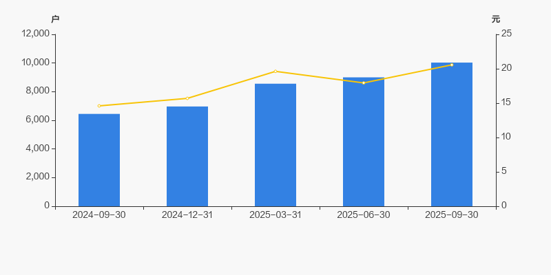 自2024年9月30日以来,公司股东户数连续4期上涨,截至目前增幅为55.55%。2024年9月30日至2025年9月30日区间股价上涨40.89%。