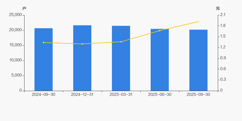 截至2025年9月30日,公司最新总股本为19.93亿股,其中流通股本为16.69亿股。户均持有流通股数量由上期的8.16万股上升至8.27万股,户均流通市值15.87万元。