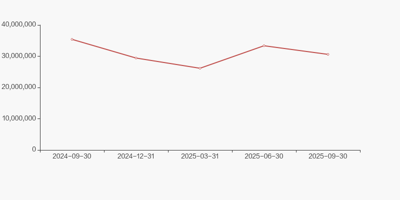 截至2025年9月30日,公司最新总股本为22.49亿股,其中流通股本为17.57亿股。户均持有流通股数量由上期的1.17万股下降至9804股,户均流通市值15.59万元。