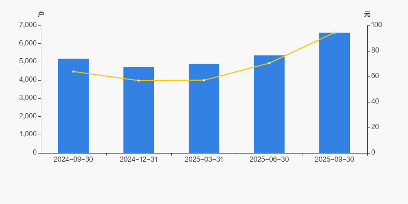 自2024年12月31日以来,公司股东户数连续3期上涨,截至目前增幅为39.64%。2024年12月31日至2025年9月30日区间股价上涨66.22%。