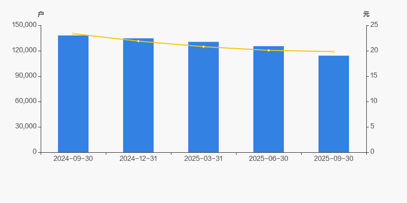2024年9月30日至今,公司股东户数显著下降,区间跌幅为17.31%。2024年9月30日至2025年9月30日区间股价下降15.11%。