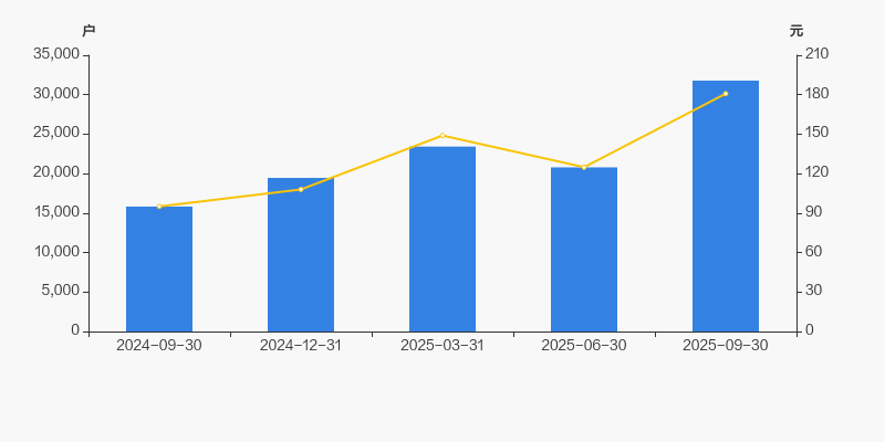 2024年9月30日至今,公司股东户数成倍增长,区间涨幅达100.81%。2024年9月30日至2025年9月30日区间股价上涨90.19%。