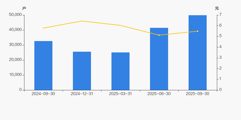 2024年9月30日至今,公司股东户数显著大幅增长,区间涨幅达52.80%。2024年9月30日至2025年9月30日区间股价下降5.08%。
