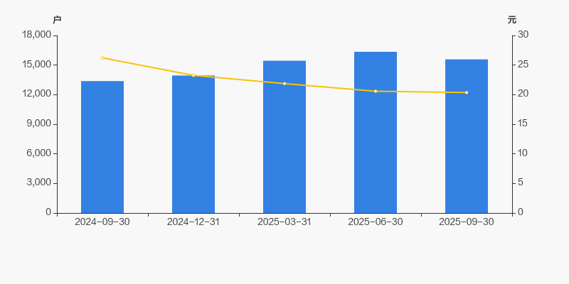 2024年9月30日至今,公司股东户数显著增长,区间涨幅为16.47%。2024年9月30日至2025年9月30日区间股价下降22.38%。