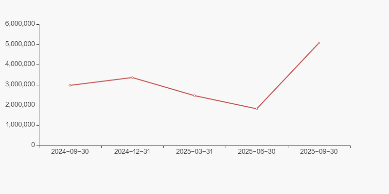 截至2025年9月30日,公司最新总股本为8.64亿股,其中流通股本为6.02亿股。最新户均持有流通股数为6520,较上期略有上升;户均流通股市值为7.19万元。