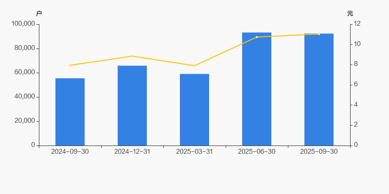 2024年9月30日至今,公司股东户数显著大幅增长,区间涨幅达66.51%。2024年9月30日至2025年9月30日区间股价上涨38.91%。