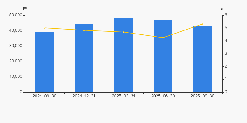 截至2025年9月30日,公司最新总股本为25.01亿股,其中流通股本为24.26亿股。户均持有流通股数量由上期的5.17万股上升至5.6万股,户均流通市值29.85万元。