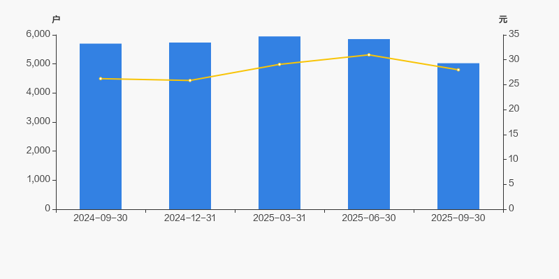 2024年9月30日至今,公司股东户数显著下降,区间跌幅为11.83%。2024年9月30日至2025年9月30日区间股价上涨6.80%。