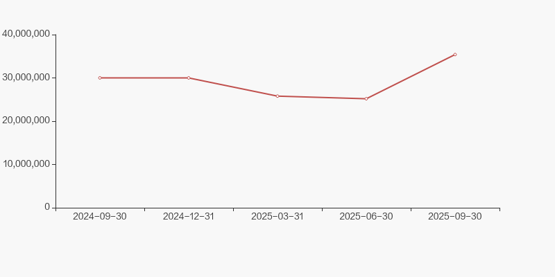 截至2025年9月30日,公司最新总股本为33.27亿股,且均为流通股。户均持有流通股数量由上期的3.5万股上升至3.71万股,户均流通市值13.37万元。