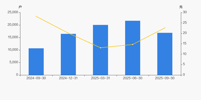 2024年9月30日至今,公司股东户数显著大幅增长,区间涨幅达58.05%。2024年9月30日至2025年9月30日区间股价下降19.66%。