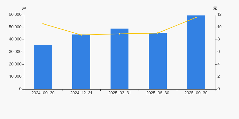 2024年9月30日至今,公司股东户数显著大幅增长,区间涨幅达66.62%。2024年9月30日至2025年9月30日区间股价上涨9.71%。