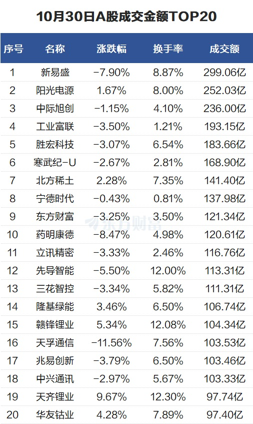 活跃个股:新易盛成交299亿元 马可波罗换手率59%