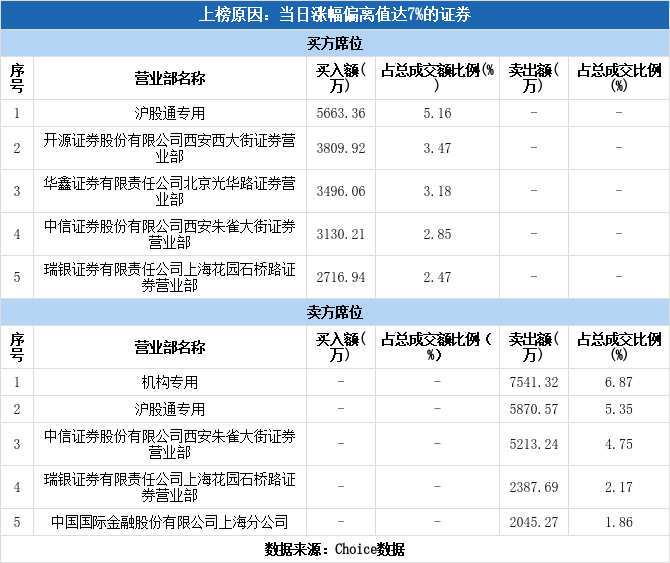今日龙虎榜单上出现了沪股通的身影,占据了买一、卖二的位置,净卖出207.21万,占当日成交总额的0.19%。